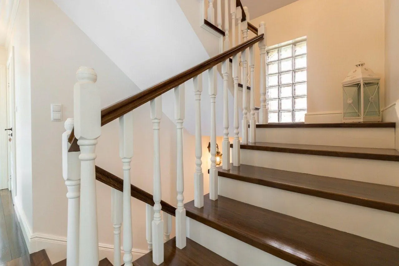 Идея для вашей лестницы: Попробуйте сыграть на контрасте: сочетайте массивные, богато украшенные резные столбы с минималистичными, тонкими балясинами. Это придаст лестнице динамику и сделает ее визуально легче, не теряя в статусности и роскоши.